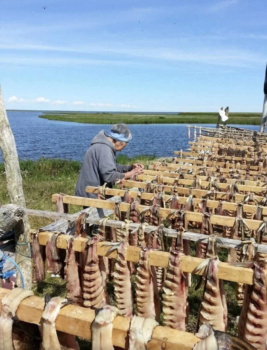 Umkumiut, a village on Qaluyaat (Nelson Island) hosts many cultural camps attended by Yup’ik people of all ages, from youth to elders who all process fish following their seasonal availability. It’s here that Paniliar participated, skillfully showing the younger generation how to process and preserve food that will sustain us through the winter. She believed strongly in starting children young, giving them tools to practice aspects of food preservation and adapting with the child’s capabilities.